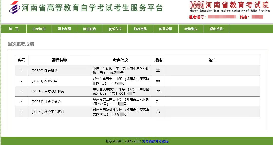 成绩查询入口:河南省高等教育自学考试考生服务平台