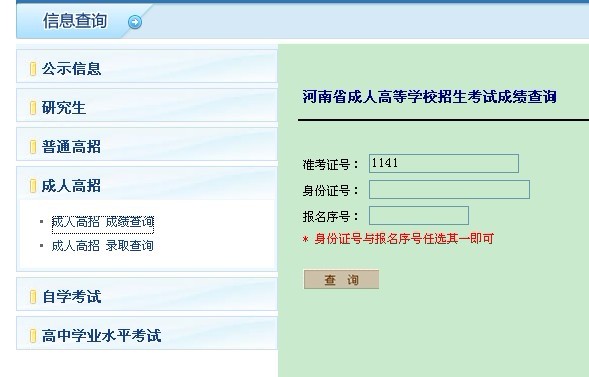 欲查询河南省成人高考录取结果请点击 河南成人高考录取结果查询