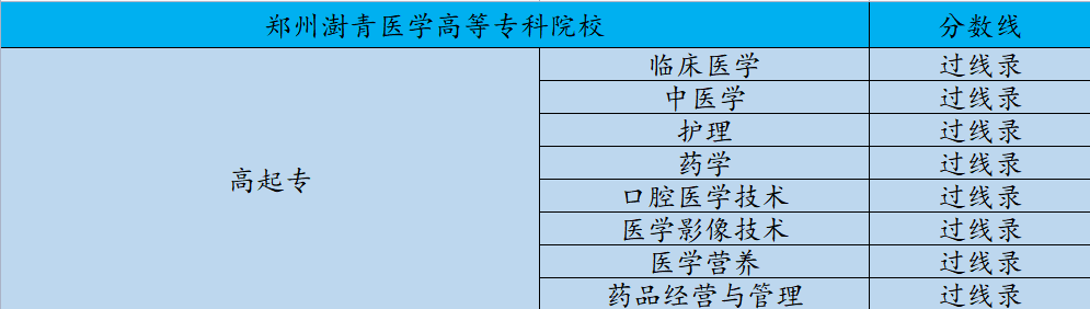 2021年郑州澍青医学高等专科院校成人高考分数线