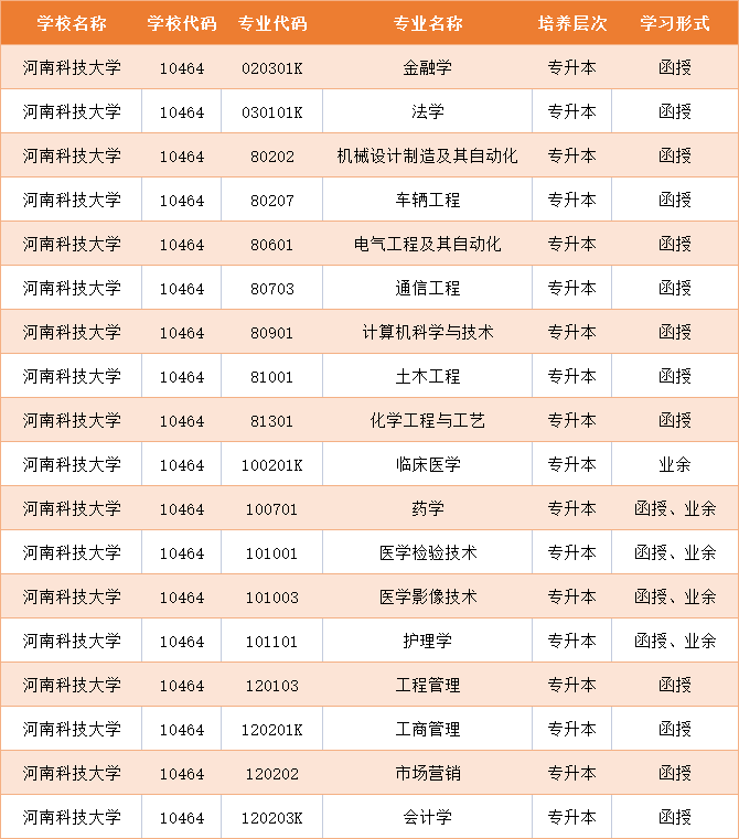 2022年河南科技大学成人高考招生专业一共18个,都是专升本层次专业。医学、经管、理工、法学等各类专业都可以报考。