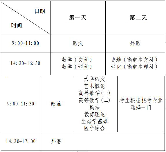 具体考试科目及时间如下: