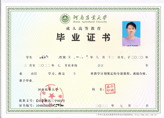 成考毕业证左下角除了毕业证编号以外,还有一个“批文编号”,这个全日制的是没有的。