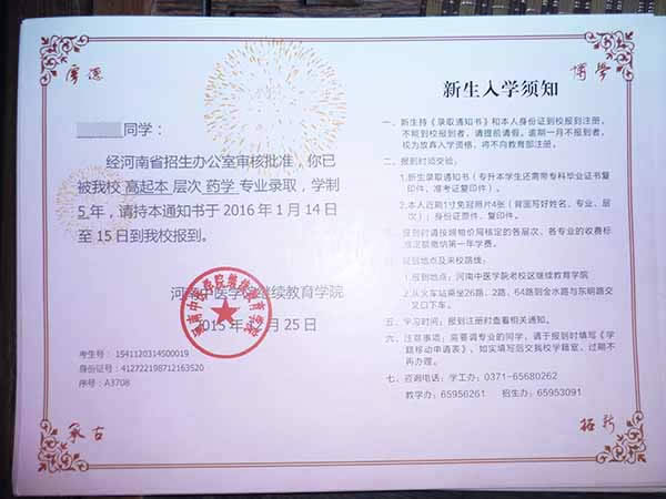 ps:河南中医学院成考录取通知书已到,其他各个院校暂未发放至我中心,一旦送达将立刻通过新闻和微信公众平台(zzwdjy)通知,敬请关注!