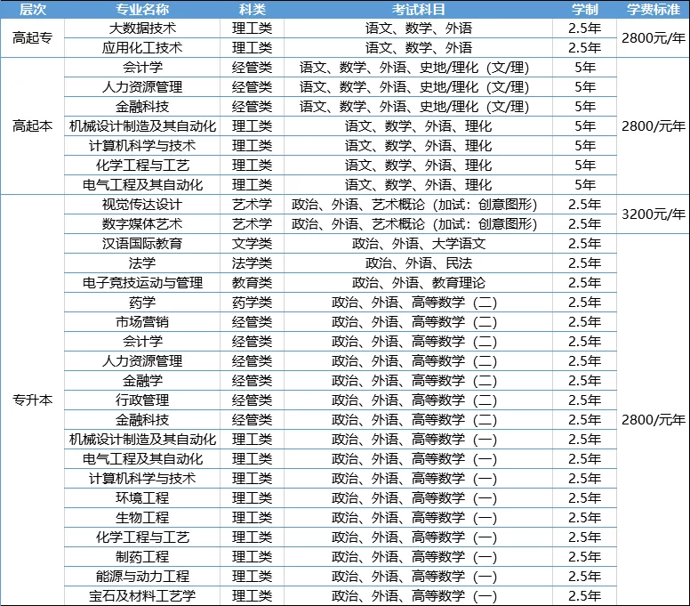 注:学校学费一年一交,不存在一次性交齐!录取后缴纳第一年学费,第二年教育剩余1.5年学费!