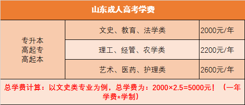 文史、法学、哲学、历史学、教育学类学费:2000元/年;