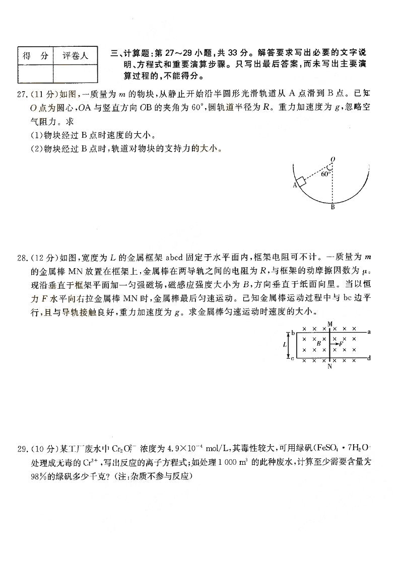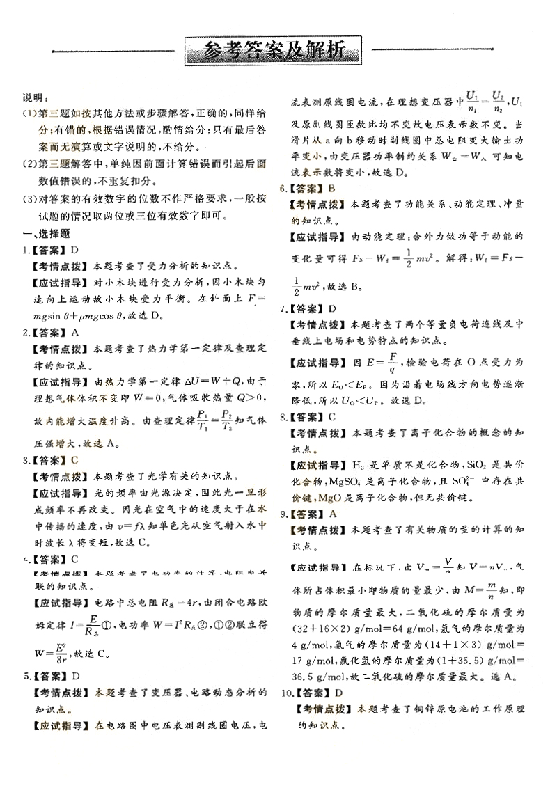 全国(河南)成考高起点理科综合《物理化学》历年真题及答案汇总