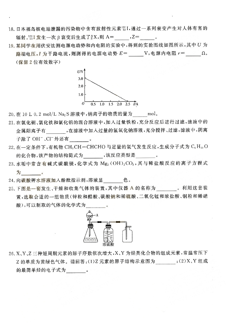 2018年全国(河南)成人高考高起点理科综合《物理化学》真题及答案(2)