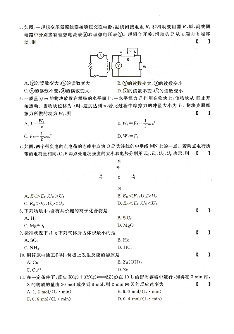 2018年全国(河南)成人高考高起点理科综合《物理化学》真题及答案(5)