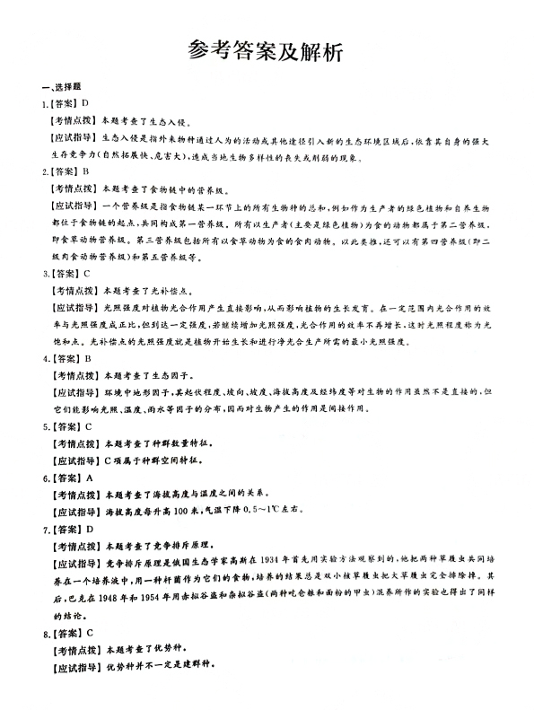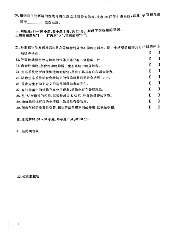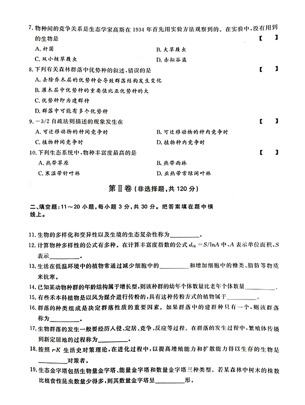 2021年全国(河南)成人高考专升本《生态学基础》真题及答案(2)