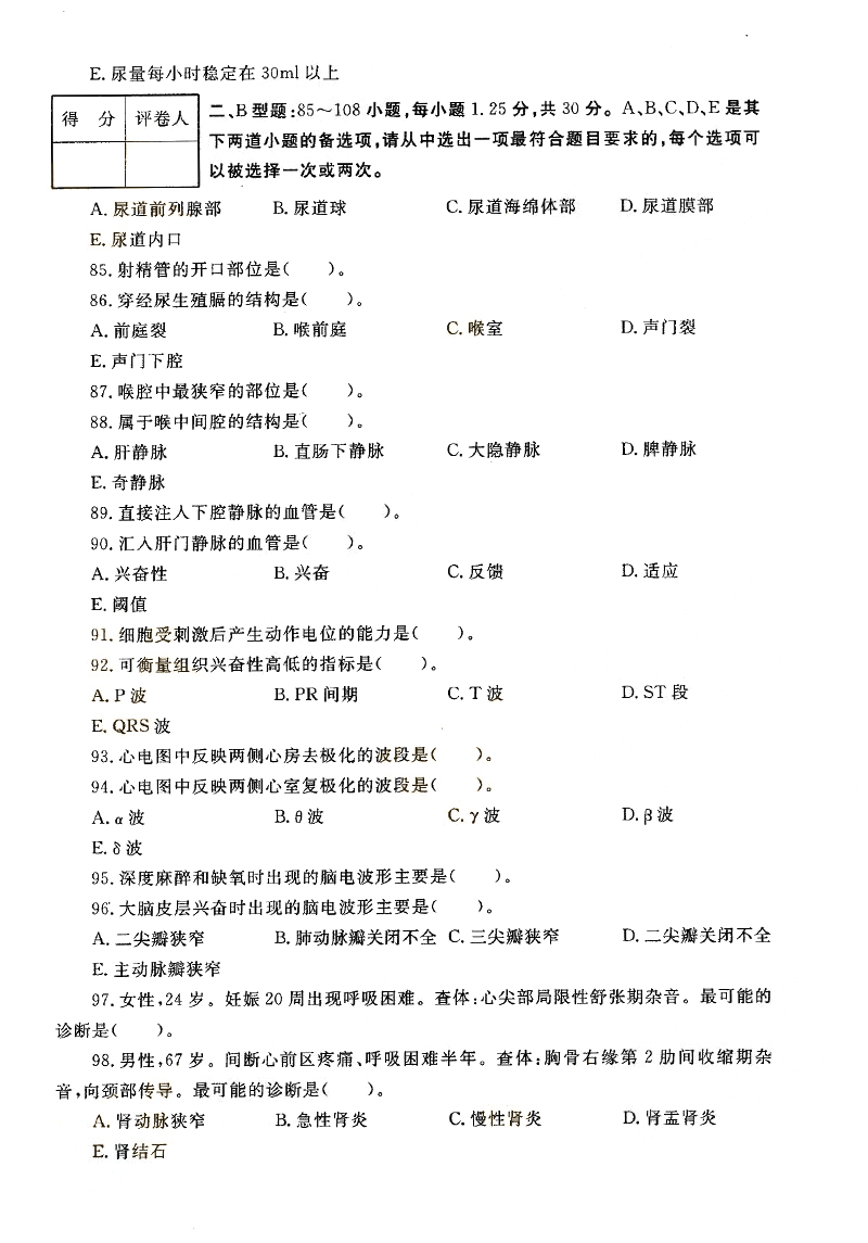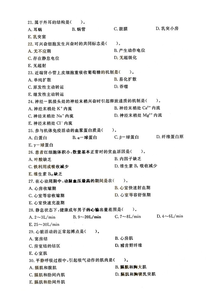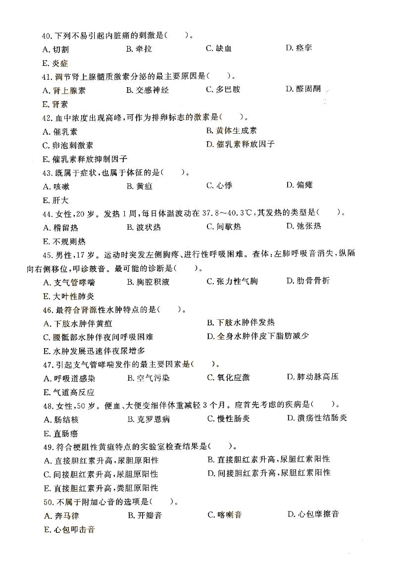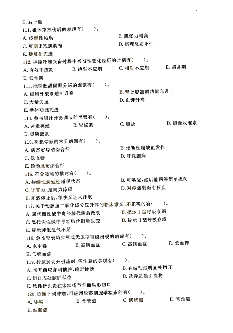 2016年全国(河南)成人高考专升本《医学综合》真题及答案(5)