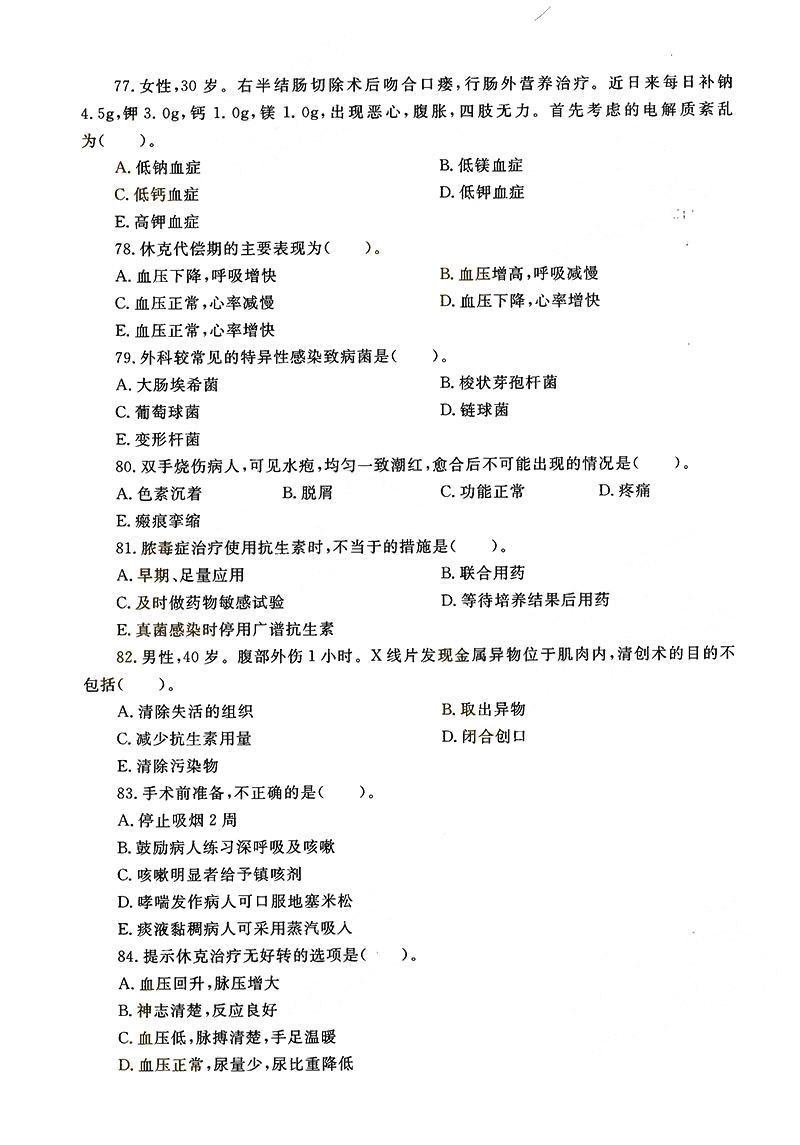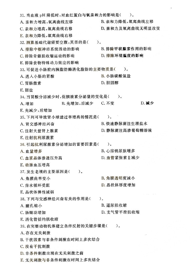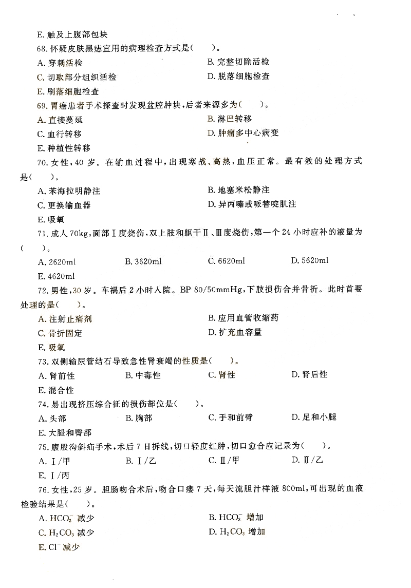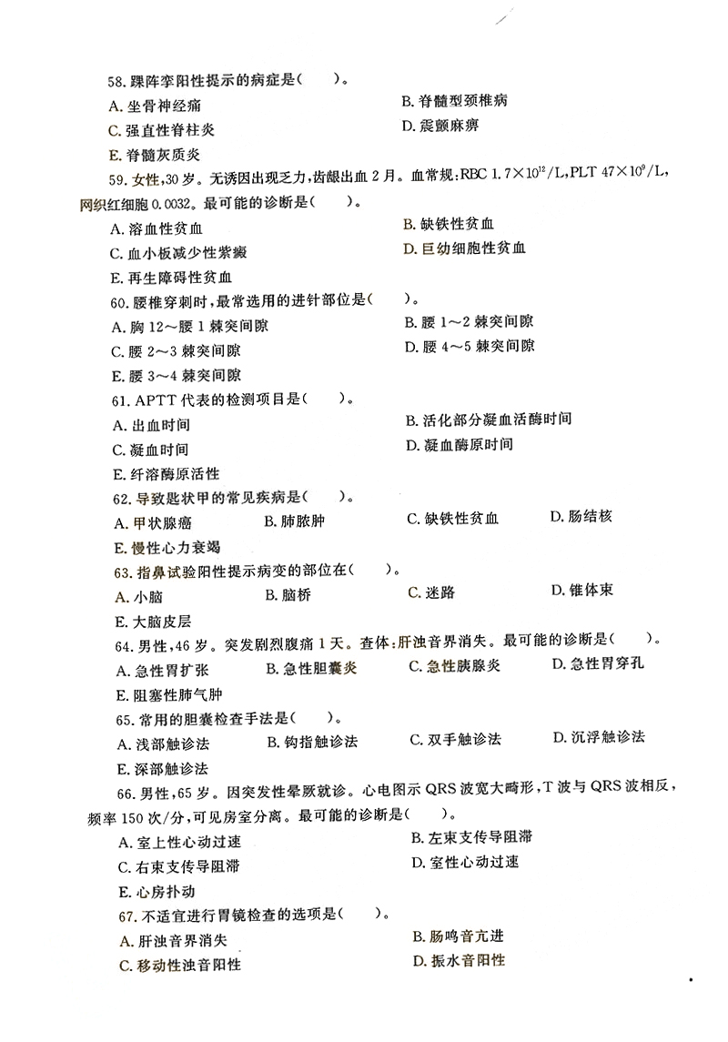2016年全国(河南)成人高考专升本《医学综合》真题及答案(5)