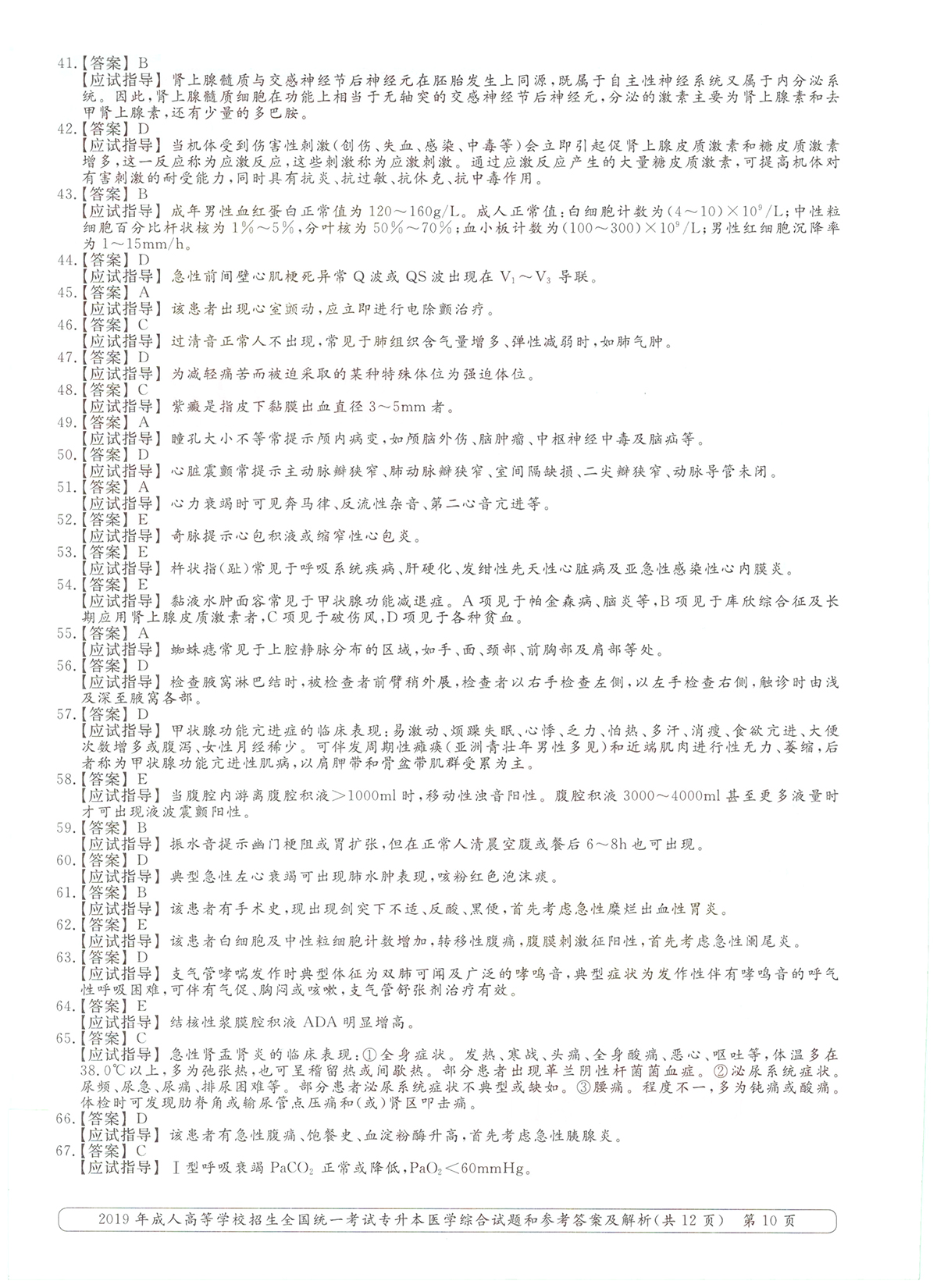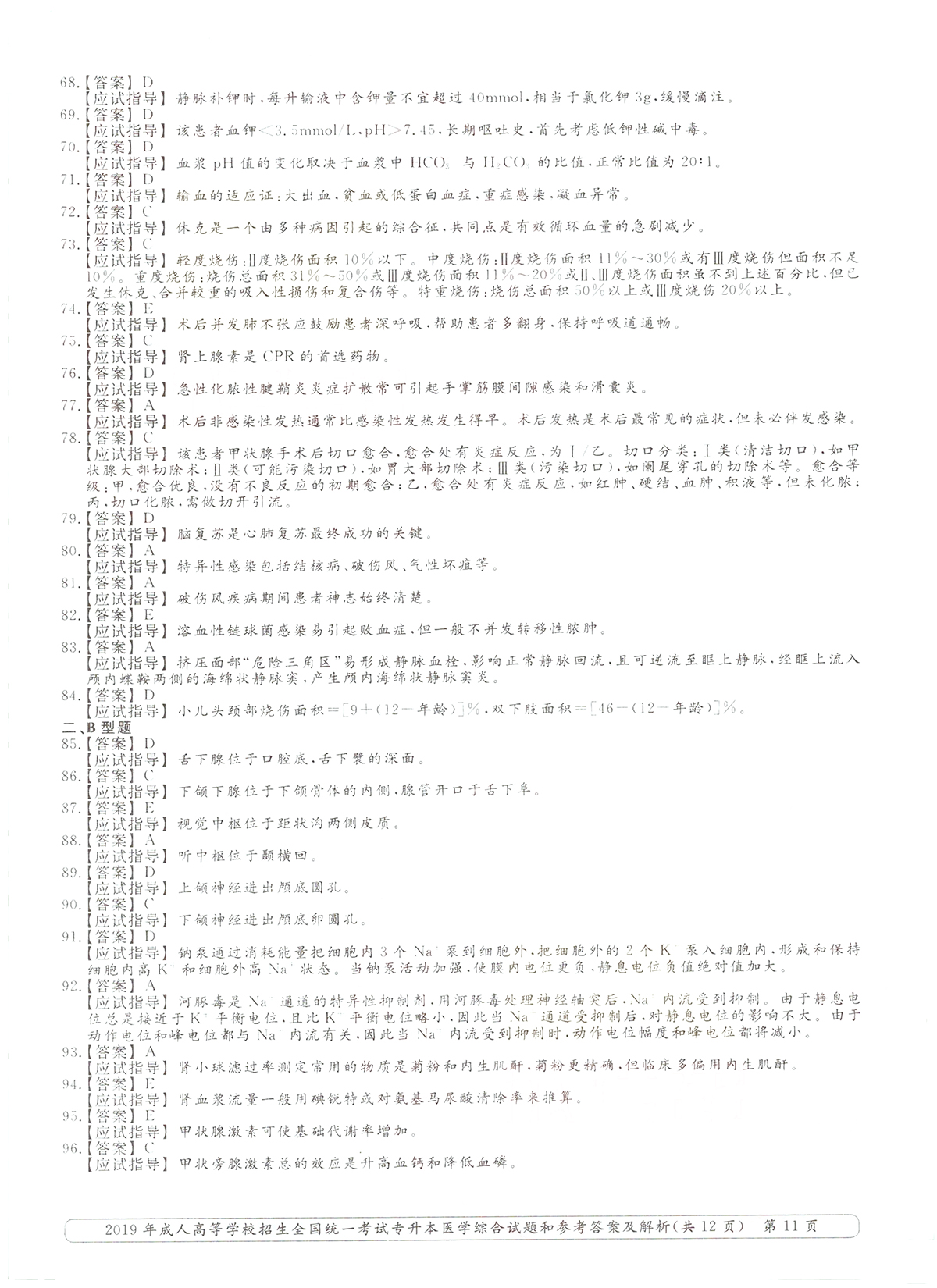 2019年全国(河南)成人高考专升本《医学综合》真题及答案(10)