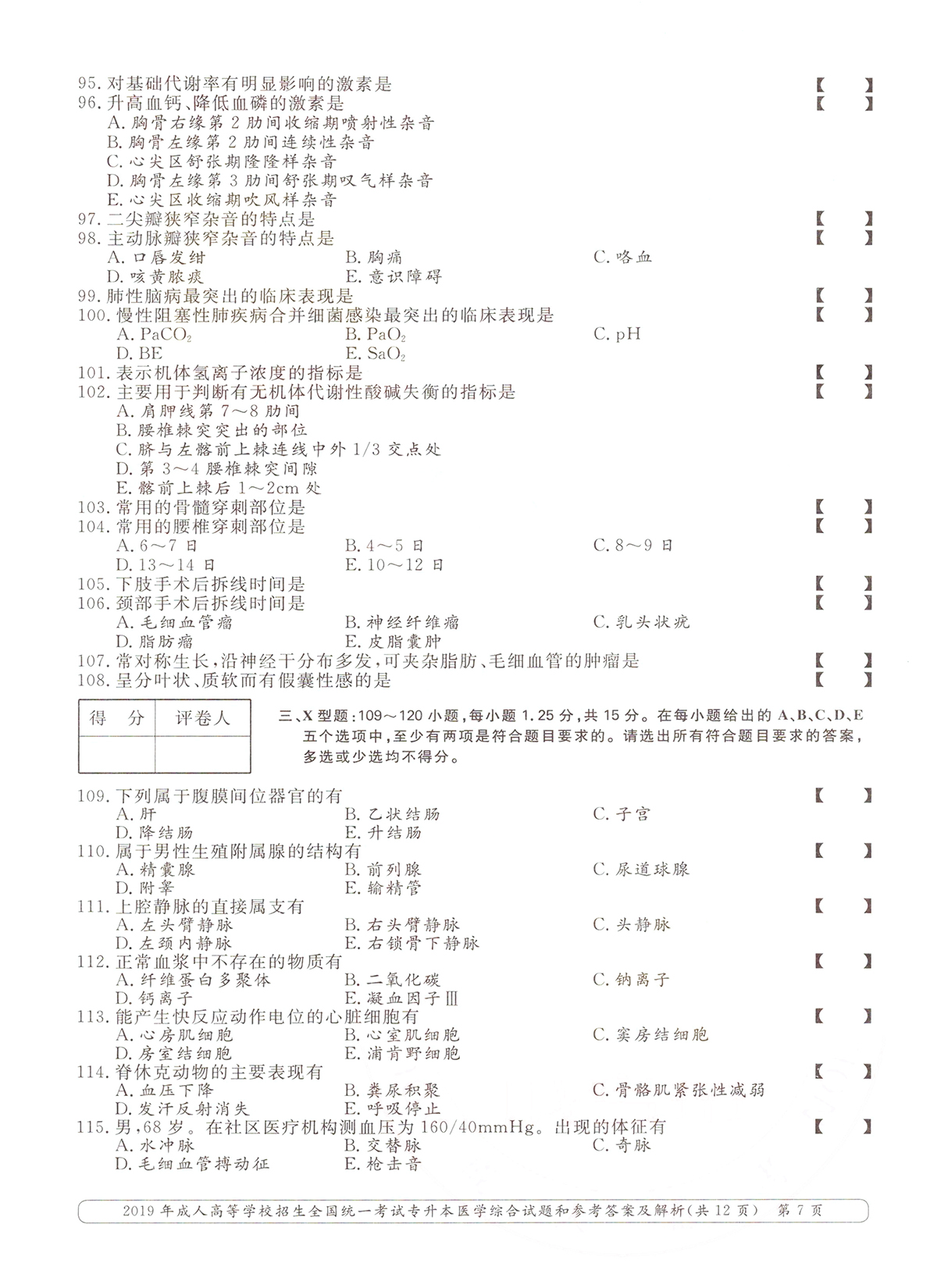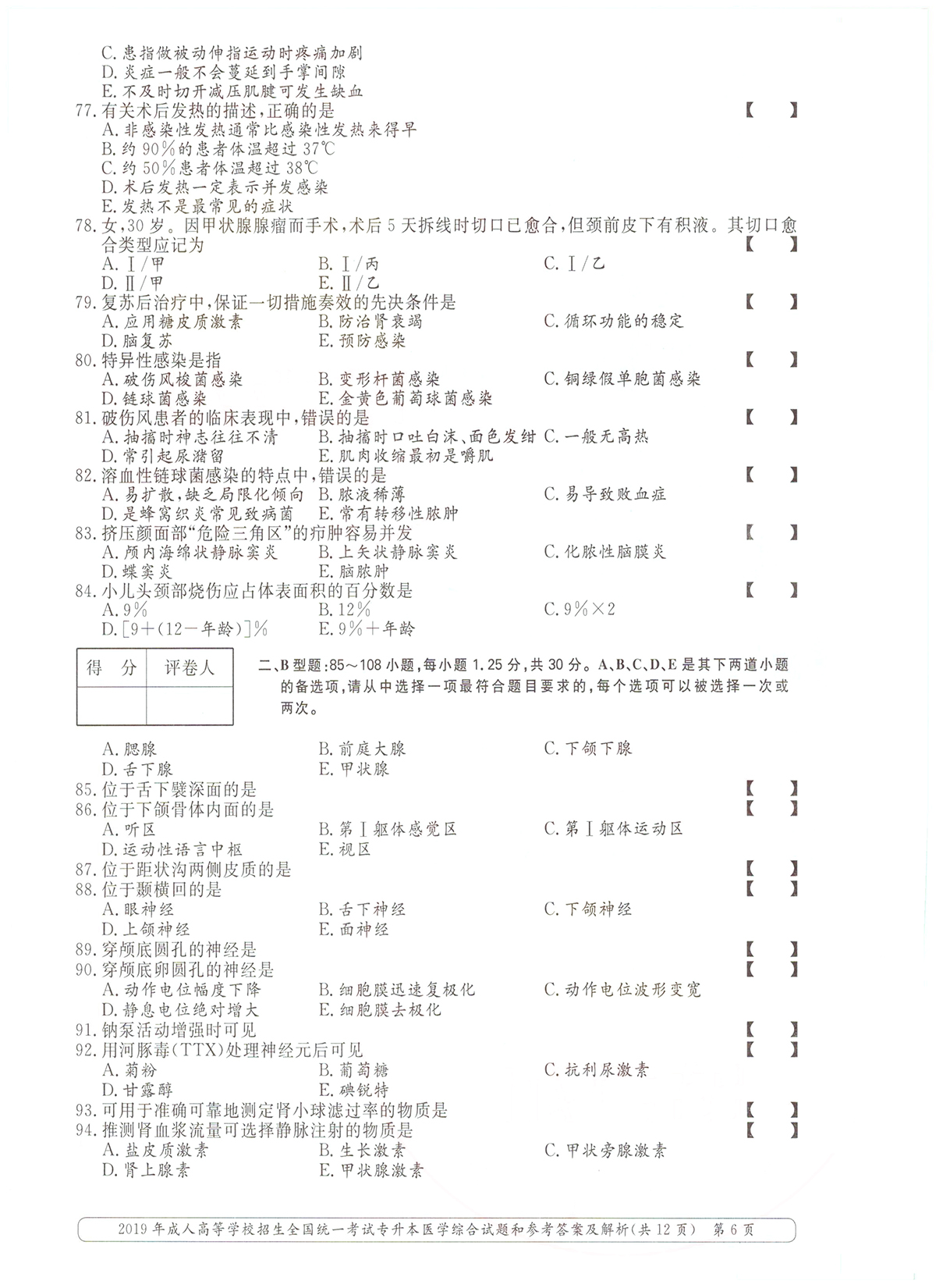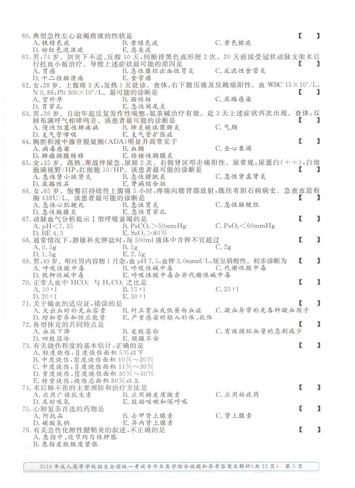 2019年全国(河南)成人高考专升本《医学综合》真题及答案(5)