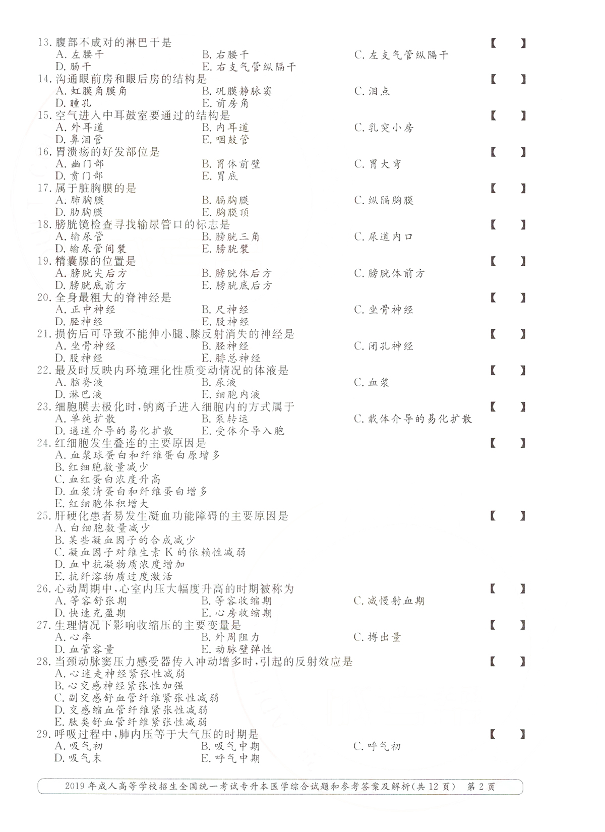 2019年全国(河南)成人高考专升本《医学综合》真题及答案(2)