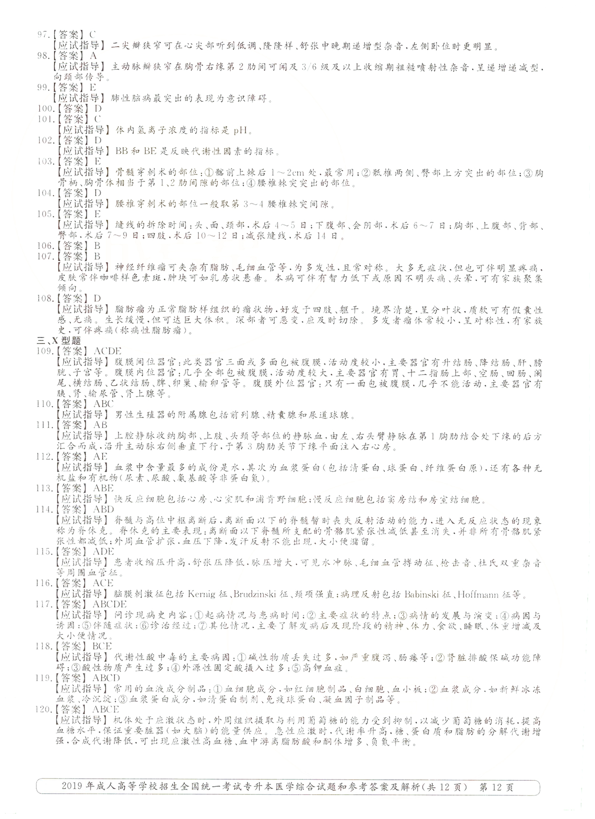 2019年全国(河南)成人高考专升本《医学综合》真题及答案(12)