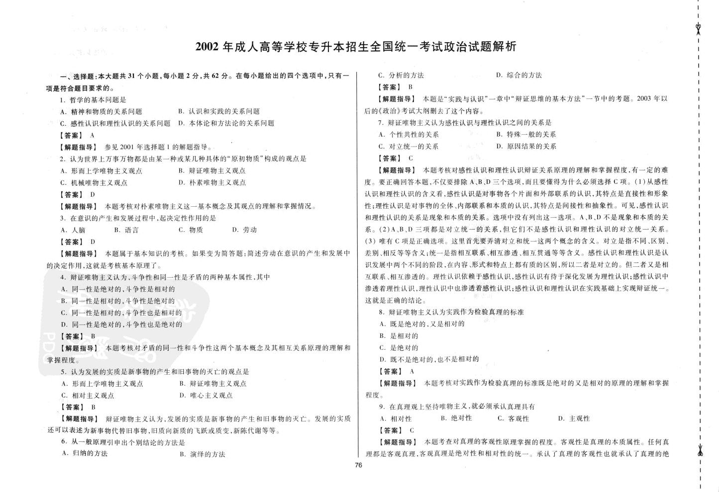 在以往的文章中,中原成人高考网孔老师为大家上传了六套河南成人高考专升本考试科目《政治》模拟真题及答案,现在这篇为大家上传的是考试试卷答案解析与题型分析,以便于成考生更好的掌握考试的脉搏,也衷心祝愿所有的考生都能在十月考出一个好成绩!点击可查看姊妹篇 河南成考专升本《政治》试卷答案与题型解析(下)。