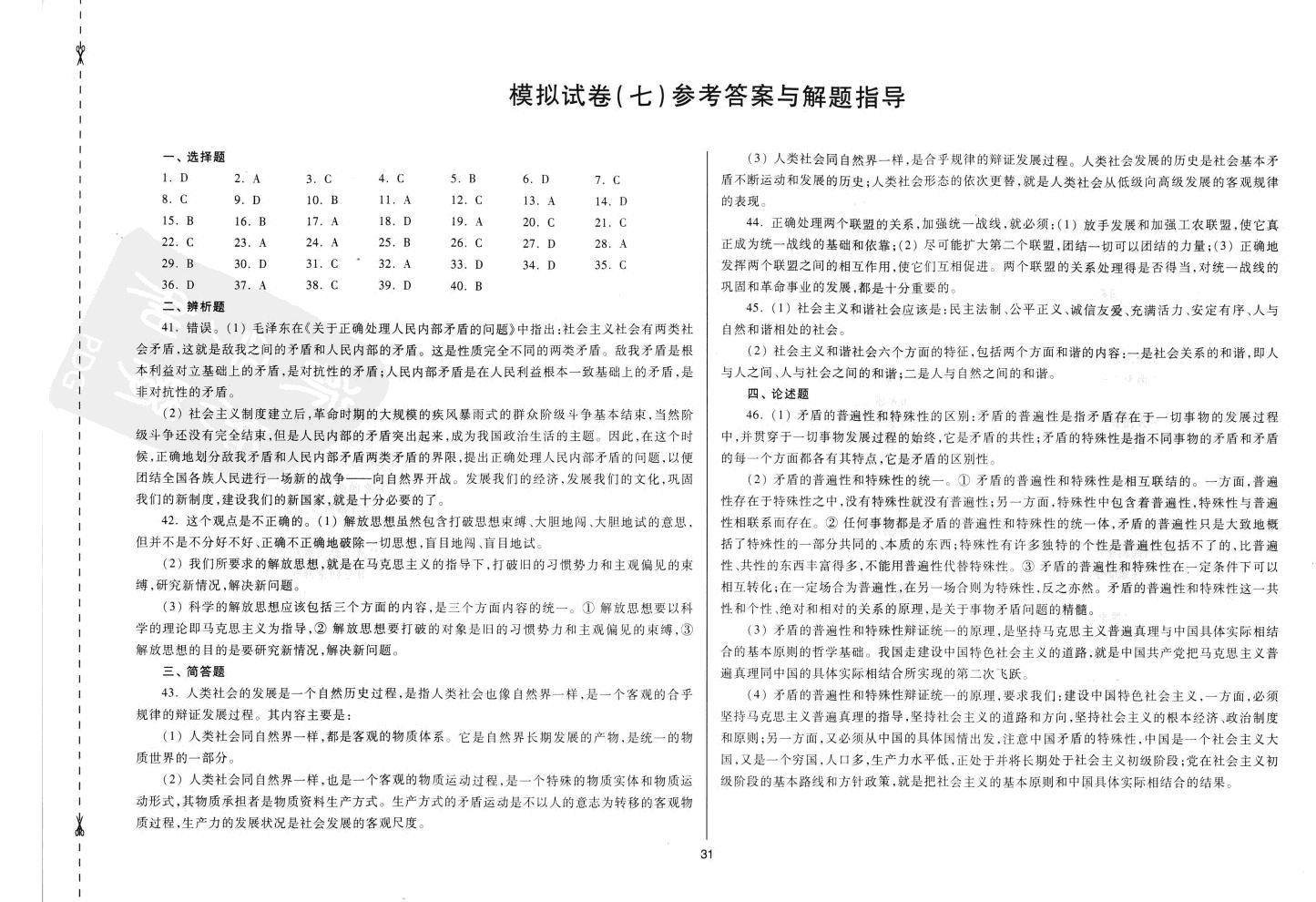 河南成人高考培训班《政治》科目第七套模拟试卷真题及答案解析