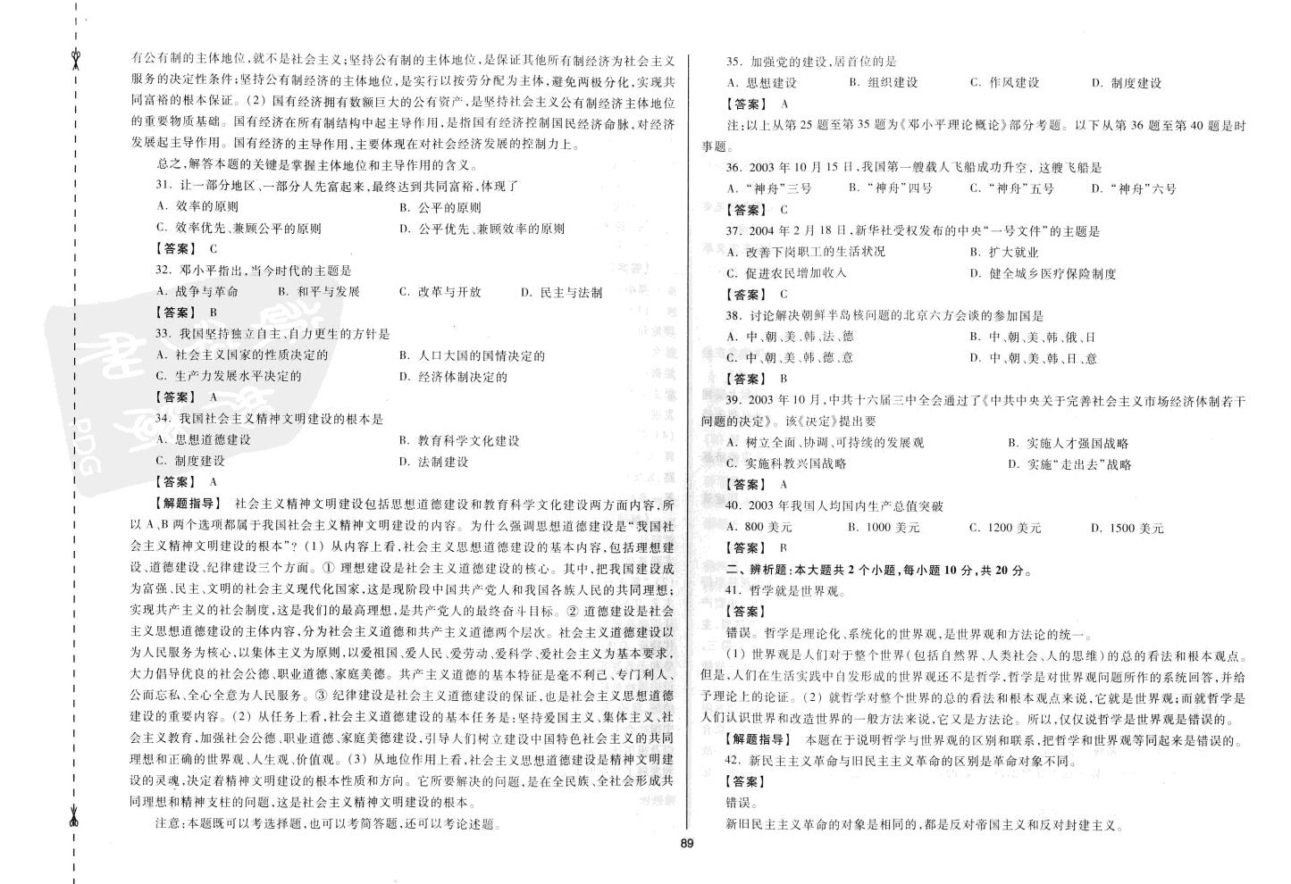 第四套成人高等教育专升本招生考试科目《政治》出题类型分析【中篇】 上一篇已发了本套试卷的上篇,这