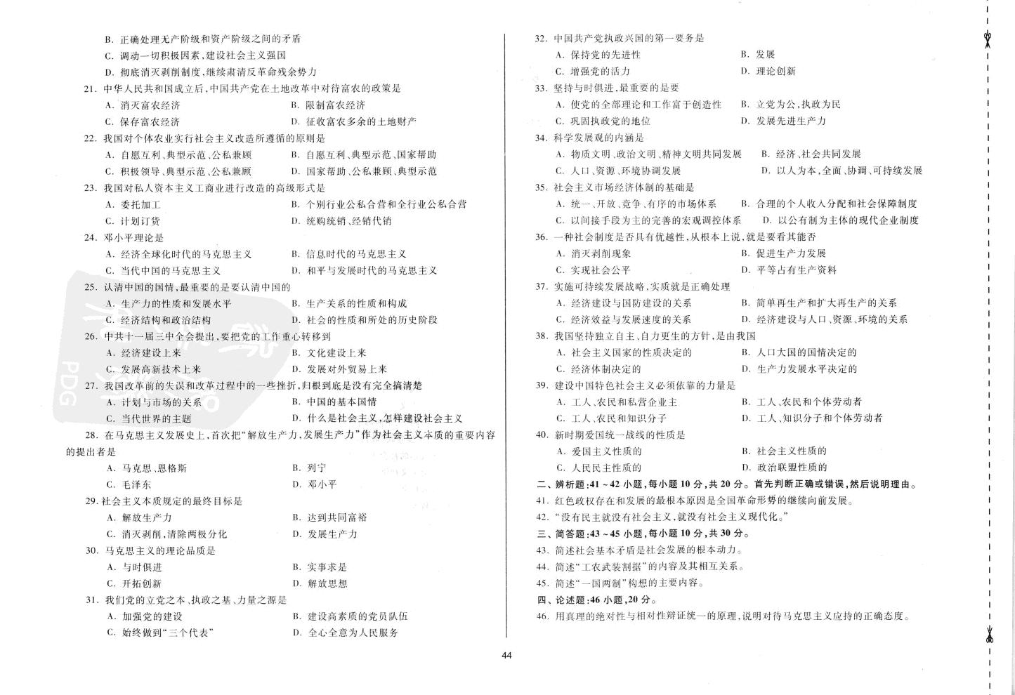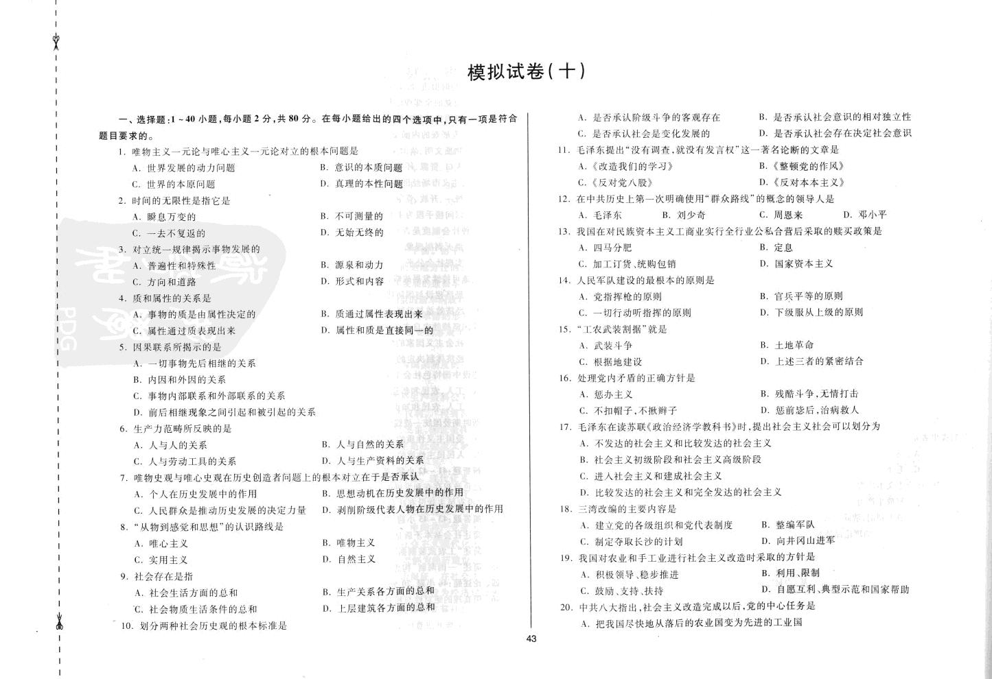第十套成人高等教育本科院校招生考试科目《政治》模拟试卷(十)试题内幕【图文】