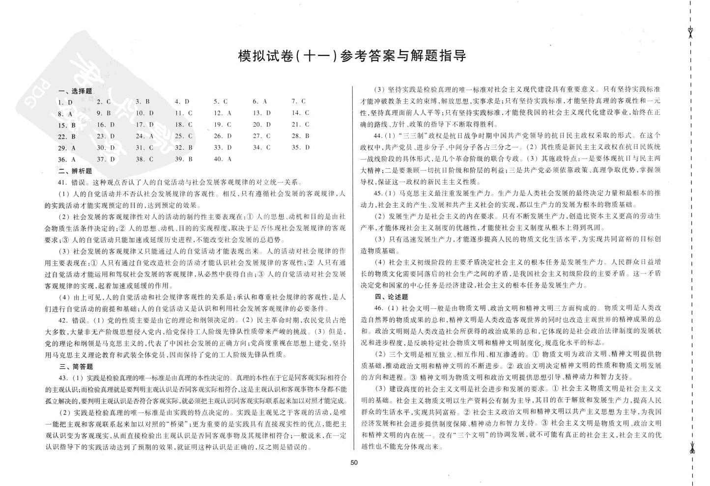 成人高考本科招生院校全国统一考试科目《政治》模拟试卷(十一)试题答案解析【图文】