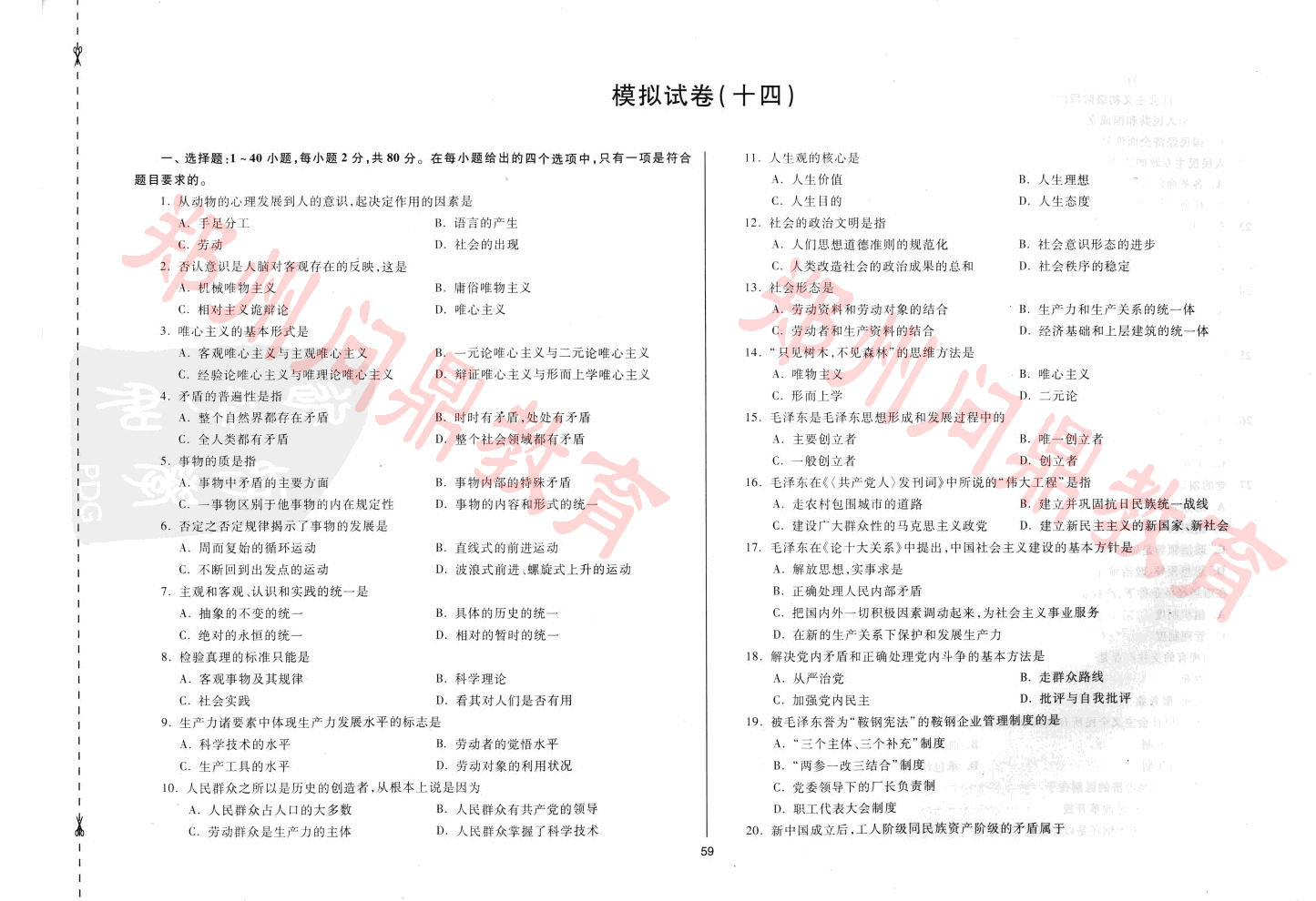 本套模拟题的第十三套(成人高考本科《政治》第十三套模拟试卷)已于前几日发布过,今日中原成人高考网孔老师为大家发布第十四套模拟试题。