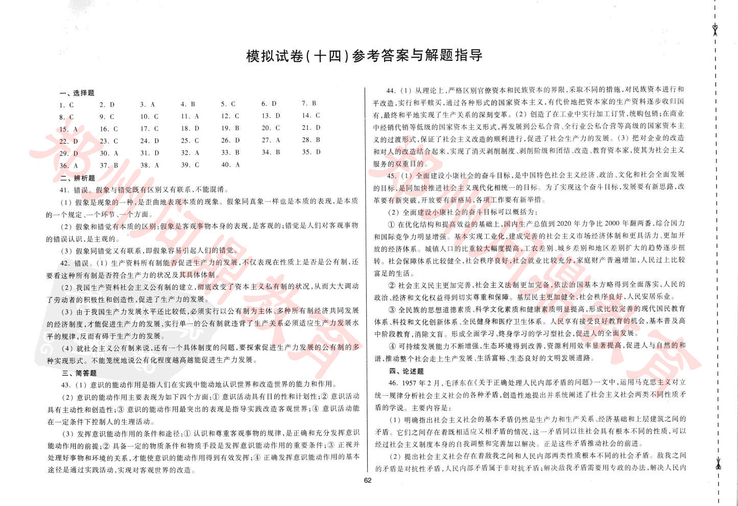 本套试卷为成人高考历年模拟试卷【十四】标准答案及解题指南,若有疑问可咨询客服人员,索要本套试卷电子版本可到客服人员【QQ:1298709253】处详细咨询。想了解更多有关于成人高考模拟试卷的问题请及时关注中原成人高考网,我们会第一时间为你发布成人高考的最新动态!本文源地址:河南成人高考专升本科目"政治"模拟试卷答案及解题技巧 https://www.hncrgkw.com/shiti/729.shtml