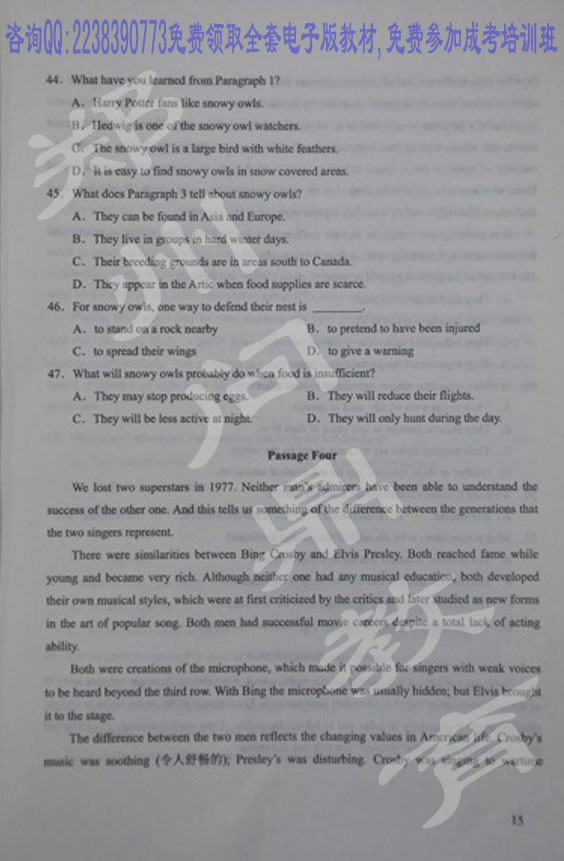 2012河南成人高考大专升本科英语科目去年试卷原题四: