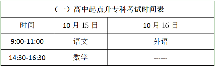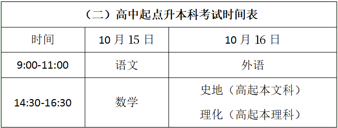 (一)高起专考试时间安排: