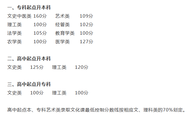 一、24年河南省成人高考录取分数线