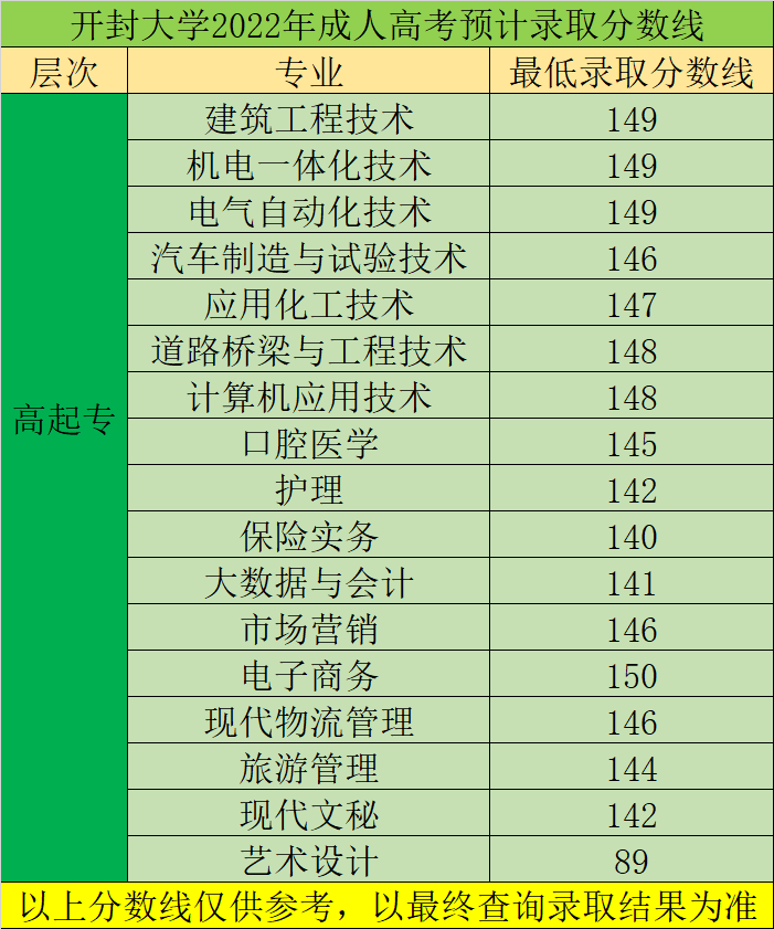 以上就是“23年开封大学成人高考多少分录取”的详细介绍!被录取的同学小编就恭喜各位考生,没有录取的可以填写下方表单,小编可以帮助大家征集志愿!