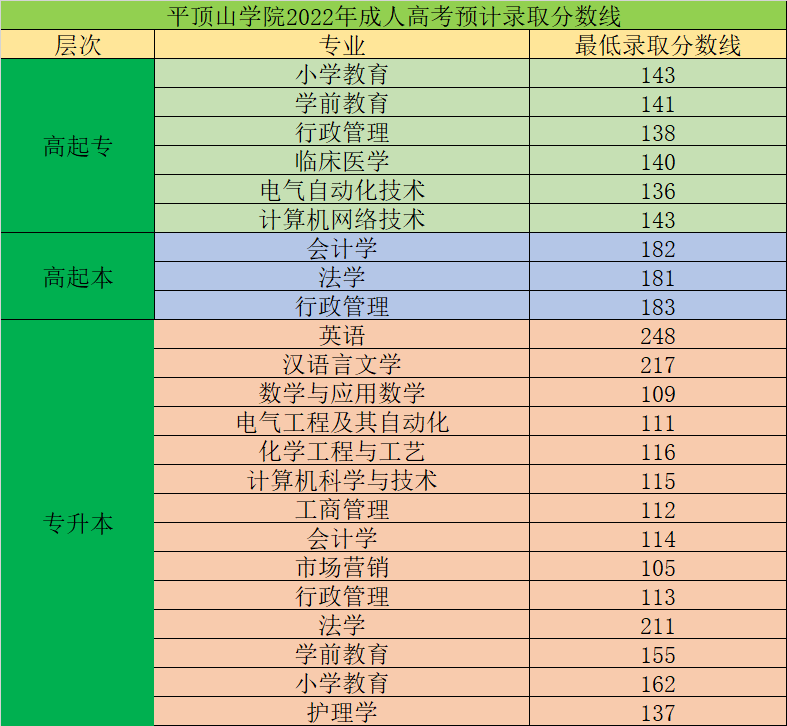 23年成人高考已经又不少省份公布了最低省控线,还有一些省份已经可以查询成绩!虽然河南省还没有开始,小编预计会在本月的25日左右,省内的考生就可以查询自己的成绩了,那自己的成绩能不能顺利录取呢,报名平顶山学院的同学,小编今天就提前整理了去年的分数线,让大家参考!