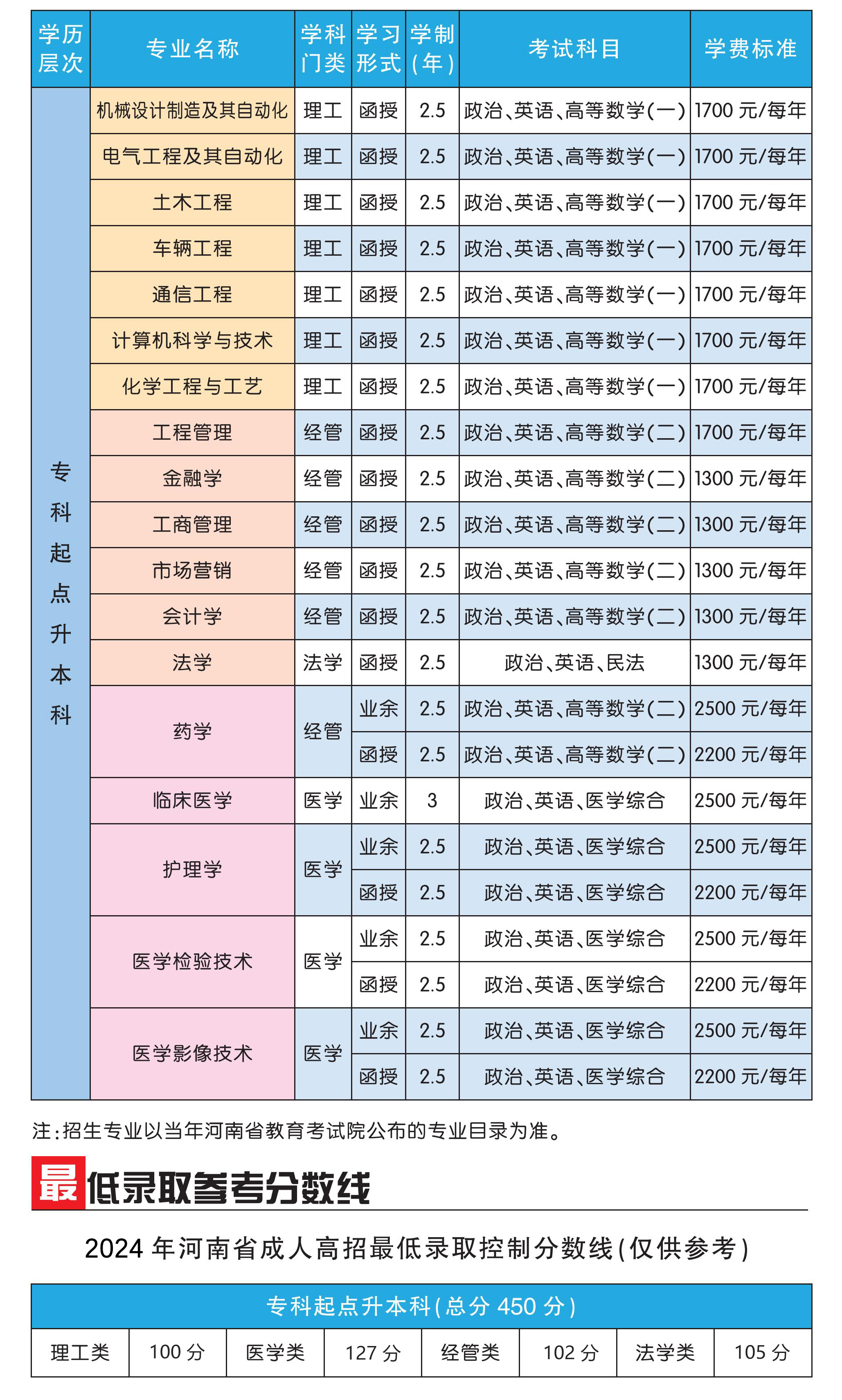 2025年河南省成人高考招生专业目前还没有公布,各位考生可以先参考2024年的招生专业!