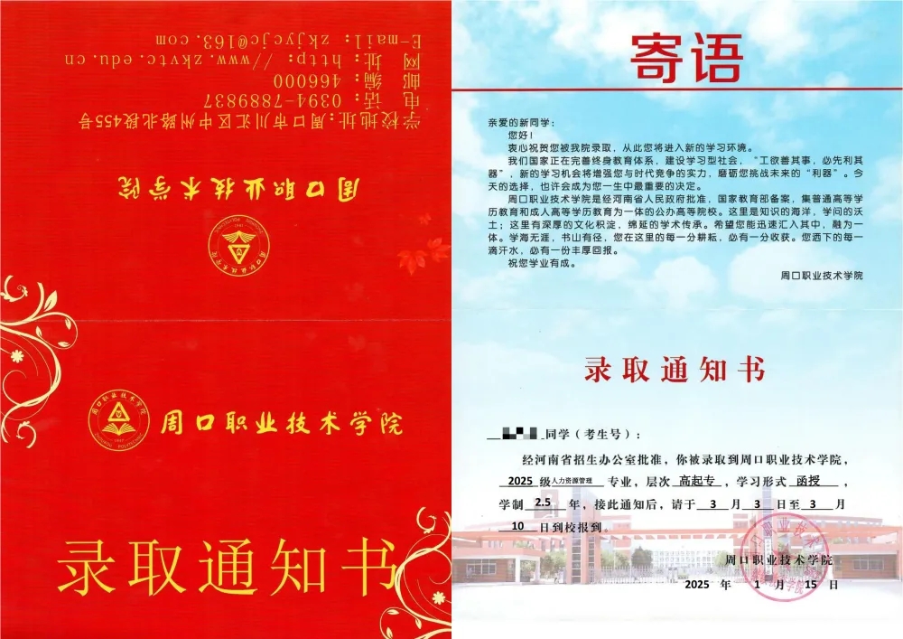 凡被录取的周口职业技术学院学生,在规定学制内学完教学计划制定的课程,成绩合格,由周口职业技术学院颁发国家承认学历的专科毕业证书,电子注册,网上可查,享受国家规定的一切待遇。