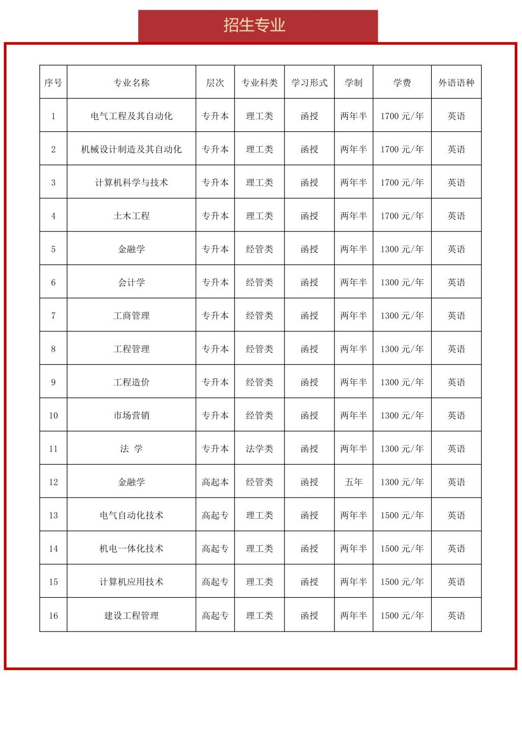 四、2025年中原工学院成人高考招生专业