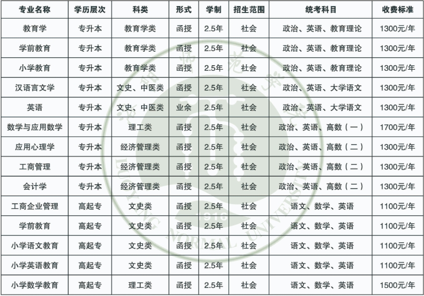 四、2025年洛阳师范学院成人高考招生专业
