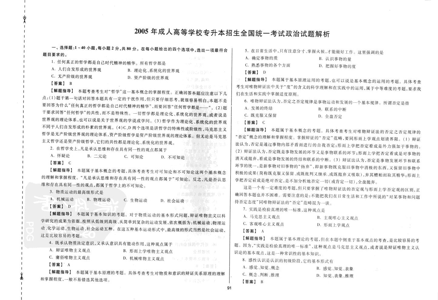 第五套成人高等教育院校专升本招生全国统一考试《政治》科目题型解析【上篇】