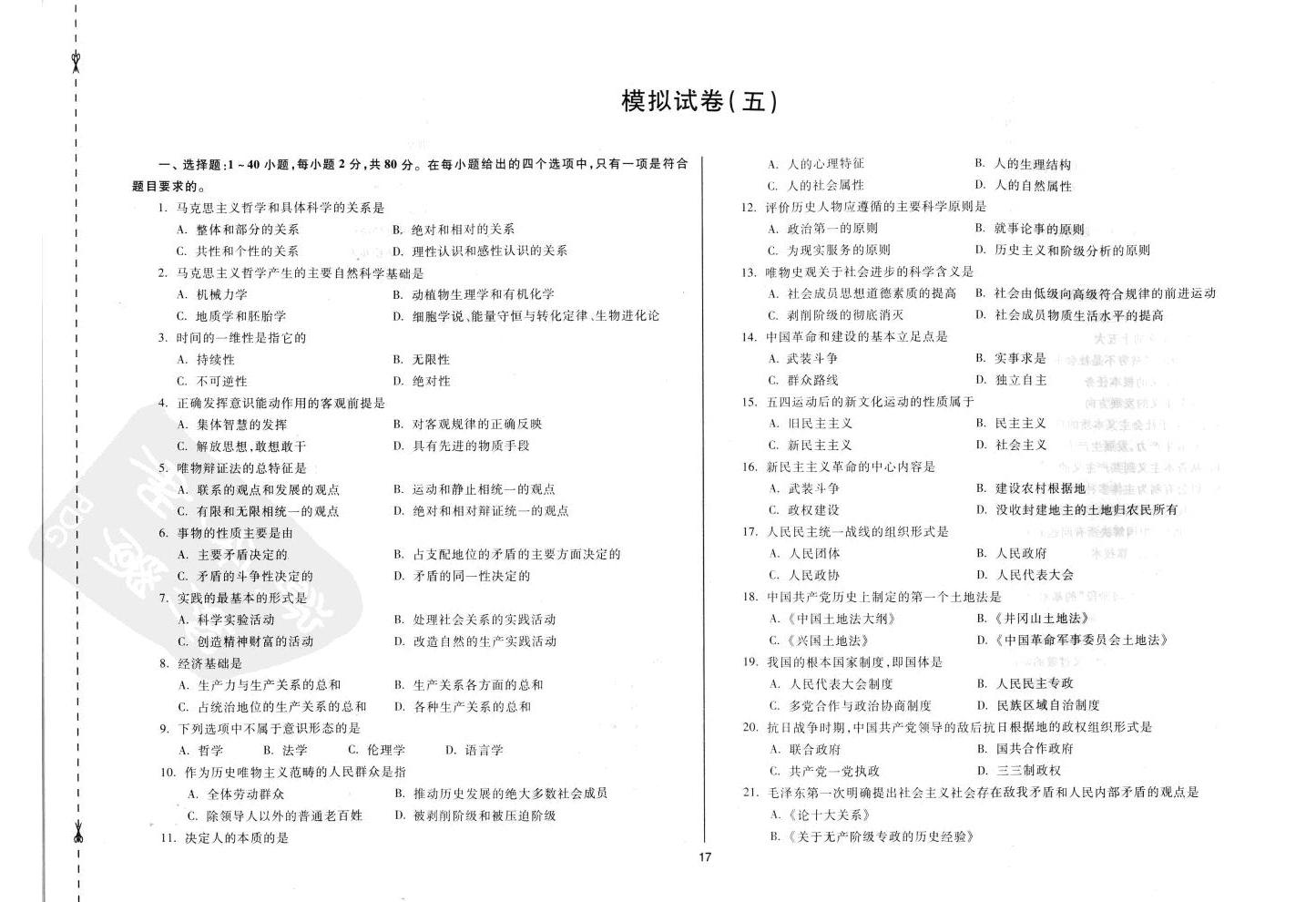 河南成人高考专科起点升本科十月考试科目《政治》第五套模拟试卷真题及答案解析