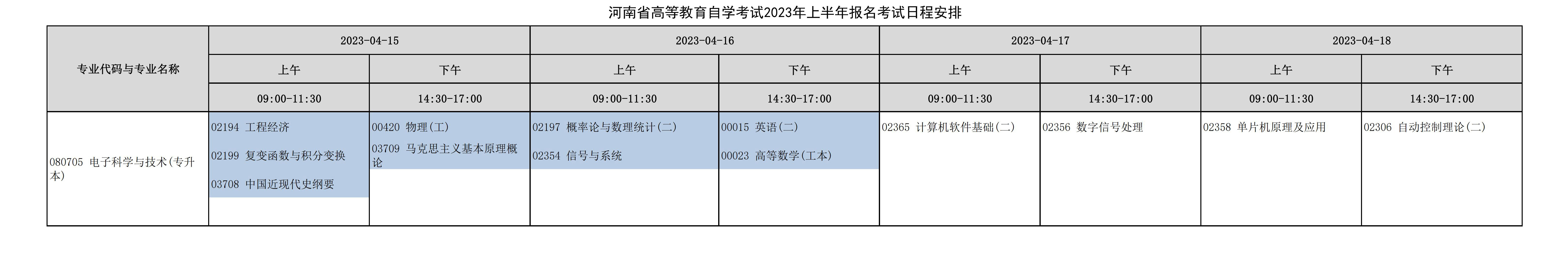 以上就是关于“河南自考本科2023年4月电子科学与技术专业考试安排”等相关内容的介绍,自考和电大、成考都是成人学历考试,如果你有需要,欢迎联系我们。