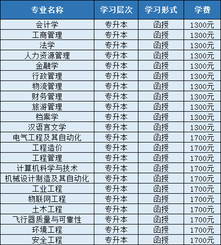 郑州航空工业管理学院函授专升本专业以理工类和经管类居多,总共有四类专业可选。下面详细介绍下。函授专升本专业以上专业学习形式都是函授,学制2.5年。函授专升本报名条件